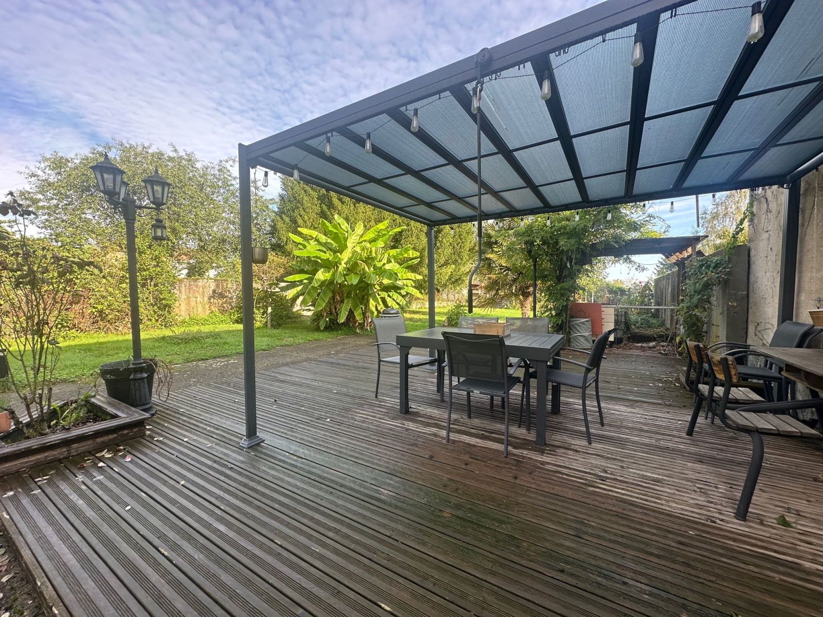 Le jardin est clos et arboré créant une ambiance reposante et agréable.